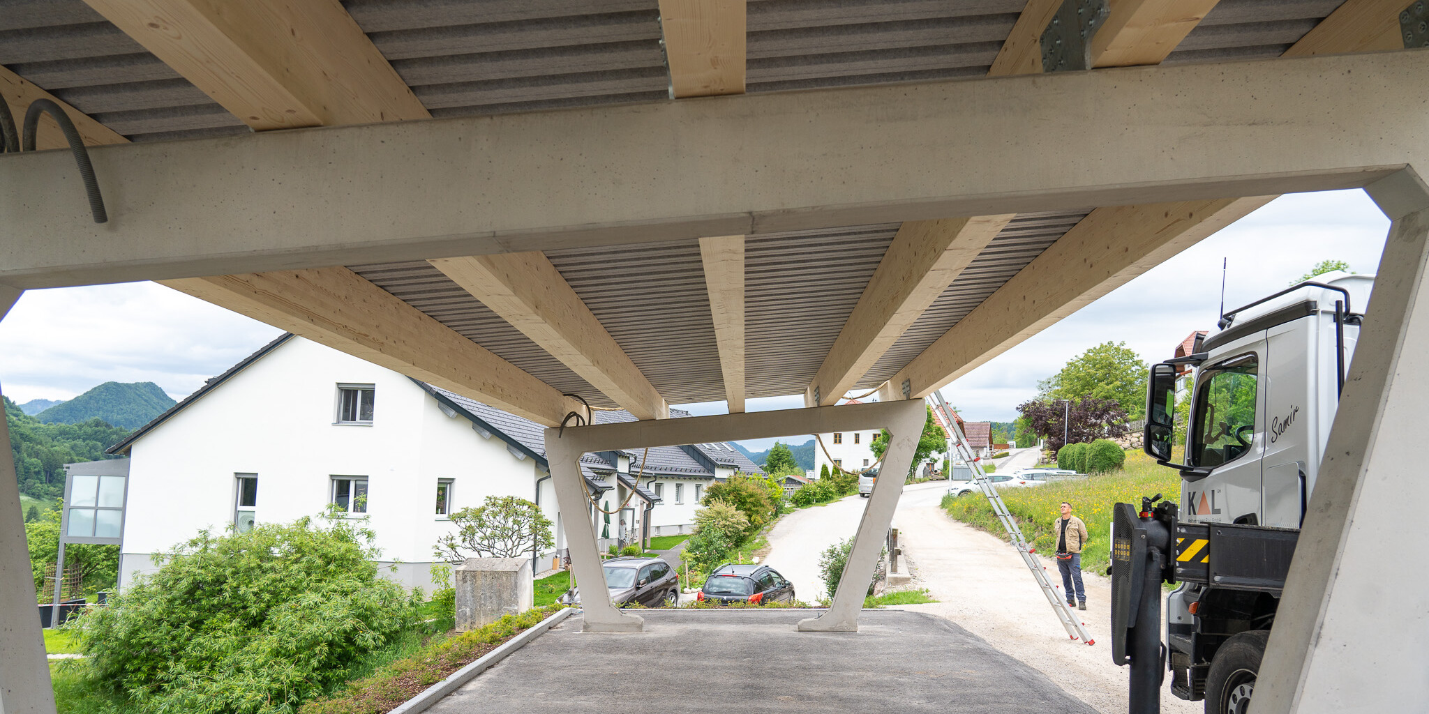 Der Hauptgrund für diese positive Bilanz liegt im Einsatz von Brettschichtholz (BSH), das als Baustoff CO₂ speichert. Trotz Betonfundament und Stahlbewehrung überwiegt der CO₂-Speichereffekt – der Carport wird zur aktiven CO₂-Senke.