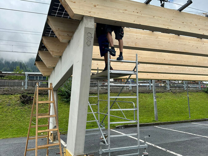 Planning, calculation, production, assembly, electrification, construction management and handling of subsidies. We customize your solar carport to your needs and parking space size.