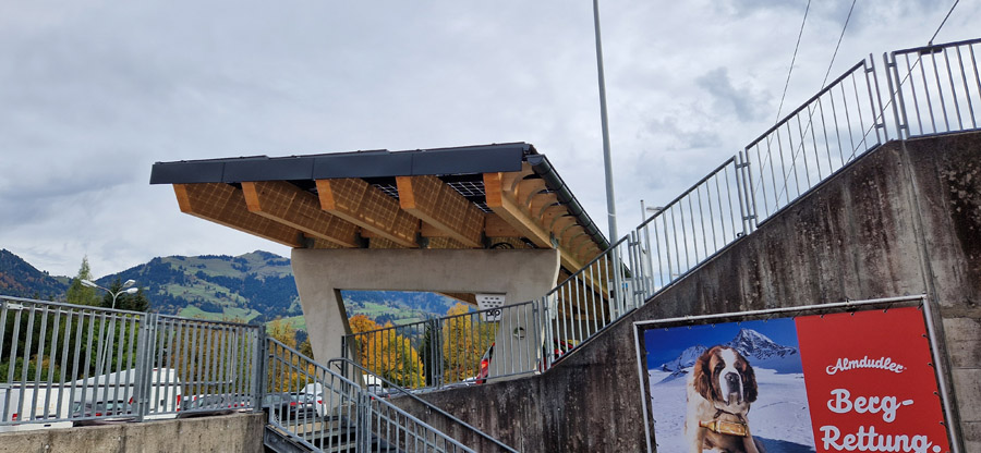 Standing variants, concrete, wood or metal construction and special shapes possible. Solar carport variants with and without e-charging columns/wall boxes. From 5 parking spaces, further parking spaces can be flexibly extended.