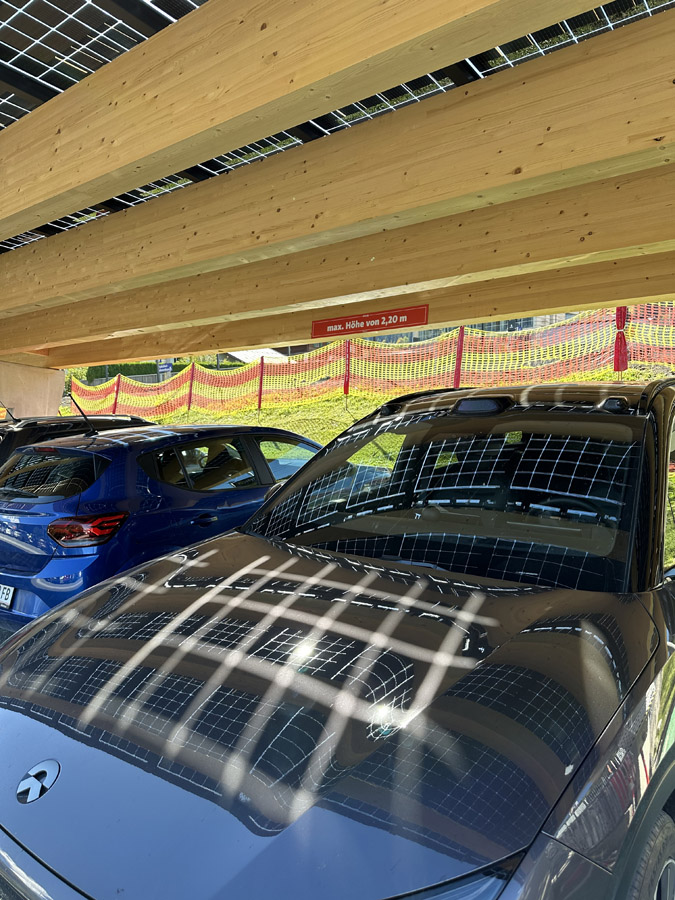 Planning, calculation, production, assembly, electrification, construction management and handling of subsidies. We customize your solar carport to your needs and parking space size.