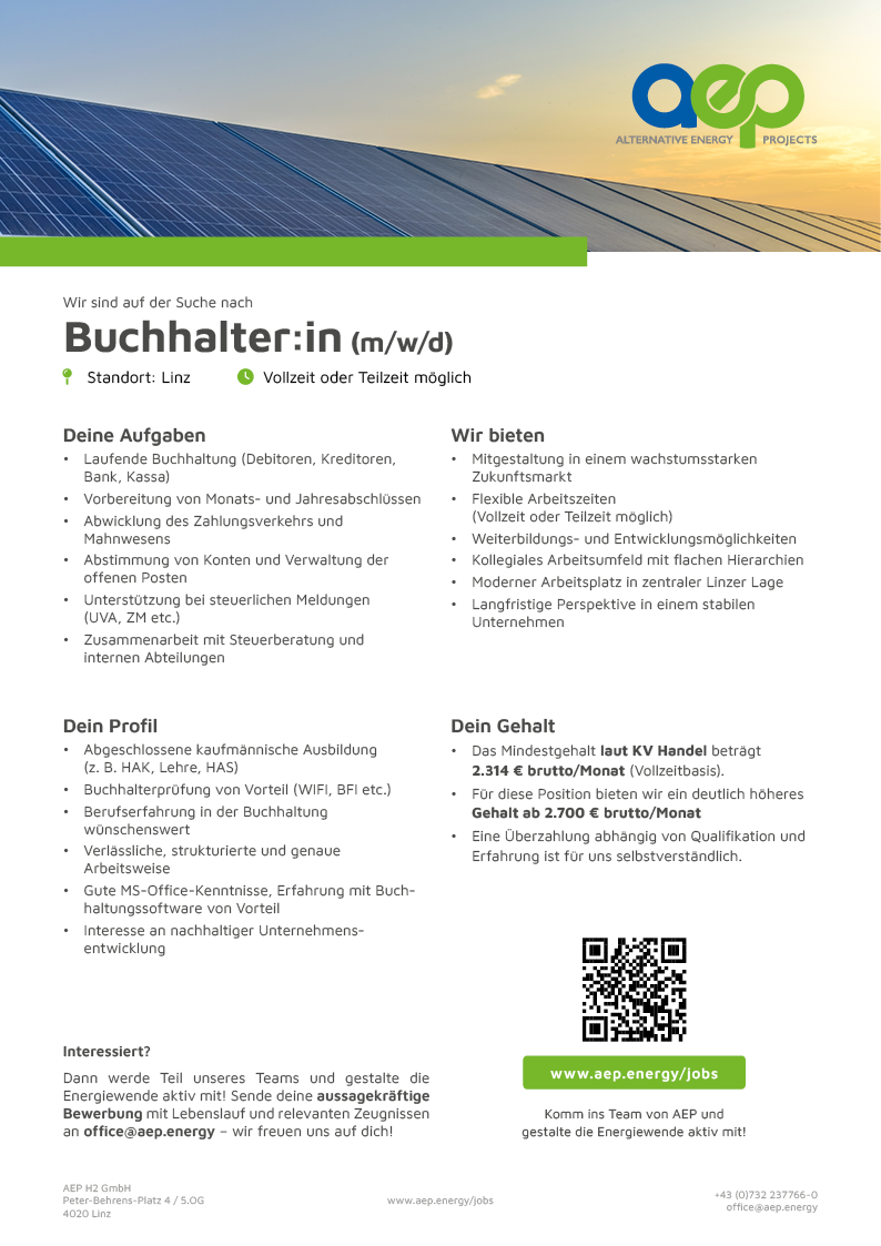 Dann werde Teil unseres Teams und gestalte die Energiewende aktiv mit! Sende deine aussagekräftige Bewerbung mit Lebenslauf und relevanten Zeugnissen an office@aep.energy – wir freuen uns auf dich!